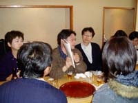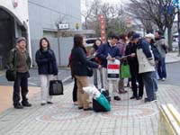 1・2 □3月20日 朝6:45。魚谷幸子さんの案内で銚子市役所で毎日開かれている朝市を見に出かけた。野菜やたべのもが並ぶとすごい勢いで人々が集まってきた。いつもの塾生達ならここですぐさまスケッチを始める所なのに、今日はちょっと違うぞ。おにぎりやカボチャの蒸しパン、かき揚げもちに舌づつみを打つのは鈴木悠くん、遠山の元さんらの男たち、いやいや女性陣もしっかりとつまんでいたようで・・・。農家のおじさんおばさん達とやけに仲よくなって野菜をたっぷり買い込んでいるのは・・・魚谷幸子さんではないか。はしゃいでいる我々を横目にスケッチをしていたのは中川弘さんであった。そんな中、真剣にファインダーを覗く人々がいた。写真塾の人達である。まわりに溶け込むのが美術塾の人たちの得意技なら、まわりが熱ければ熱いほど冷静に風景を切り取るのは、写真塾の得意技なのかな。こんなところで両塾の違いを発見したのであった。 朝市から宿へ帰ると、同室の加藤さんは、早々と部屋から見える利根川の風景をスケッチしていた。おー、これぞ、本来の美術塾生の姿。