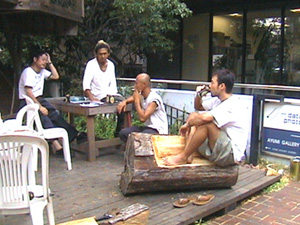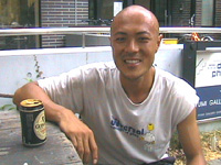 さて、どうしてイスにしようか考えていると、タイミングよくアユミギャラリーに現れた森人、四方谷毅君。