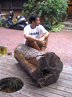2003年8月5日。宮城県栗駒からやってきたワイルドな広葉樹の木の根っこ(直径580φ)。