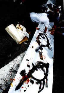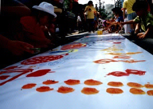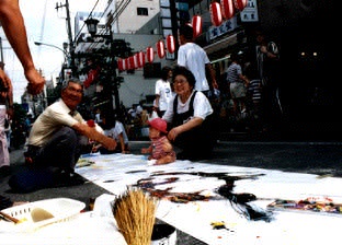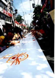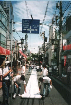 1999年7月4日(日)、東京都新宿区神楽坂で、「まちに飛びだした美術館」の一環として路上に紙を敷いて絵を描くイベントがおこなわれました。