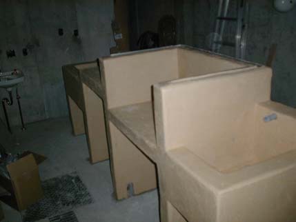 上塗り完成シンク廻り。今回は黄色っぽくなり、前のピンクがかった所とよい対比になりました。 |