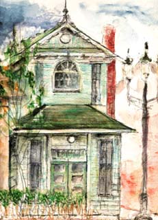 ところが、スケッチを始めるとこの春一番の暑さ! 近くにあった自販機で飲み物買って、しばらく建物を眺めていると、描きたい気持ちが膨らみ出す。 手を動かすと、形がみな楽しげに見えてきた。 |
