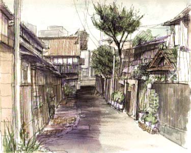 | 東京文京区、春日通りと不忍通りが交差する大塚3丁目交差点はかつて旧小石川消防署の望楼がそびえたち、戦前、大変栄えた場所だった。この交差点付近、大通りから入った所に五十嵐繁三郎さん所有の路地がある。奥の家屋は昭和8年築の五十嵐さんの住まいで、他にフランス瓦などを使用した洋館風の借家が 二棟、4軒長屋が三棟ある。いずれも、震災後、昭和初期に建てられた建物である。路地は四季折々の花々で飾られ大事に使用されている。 |