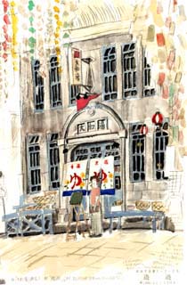 旧時代風の暖簾。男湯・女湯に分けられた入口。入ると、喫茶室のある雑貨店。脱衣籠には激辛せんべい。戸の一つ一つに、漢数字が大々的に墨書してある銭湯時代の木製ロッカーが、現代的な内装の店内で生きている。 奇妙な前歴、古い意匠が、大胆な改造のなかで一層光を放つ。 対象の可能態をも見据える、───恋愛にも近似した、面白がるまなざし。 それが一度死にかけた素材に、いまを生きる力を与える。 |