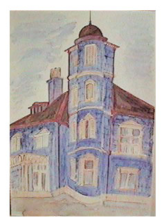 昨年10月〜12月にNHK人間大学「建築探偵・近代日本の洋館をさぐる」の中で紹介されていた桑名市の郊外、揖斐川を臨む旧諸戸清六邸を知って、「今度ここにスケッチに行きたい!」とずーっと思っていてよく晴れた7月9日に行って来ました。今は、「六華園」という名前になり市で管理され庭もきれいに整備されています。本来の設計では3階だった塔屋が川を見る為に4階になっています。 |