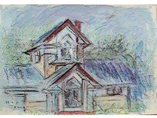 「旧小熊邸」は昭和2年に北海道帝国大学農学部小熊博士邸として建てられ、(平成10年9月に藻岩山の麓に移築され)、喫茶店として再出発し札幌の新名所として親しまれております。家のまわりは、スケッチをしているときも、コーヒーの香りがふんわりと漂い、描き終えたら早くコーヒー飲みたいな、と思いつつ描きました。 |