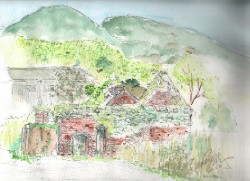 琵琶湖のほとり近江八幡に、 日本でも数少ない大きなホフマン窯を持つ煉瓦工場があった。 いま窯は、辛うじて形は留めているが、 なにか、もの悲しさを訴えているようである...。 現代のひとの心を見ているのであろうか...。 いまは動いていない煉瓦工場。