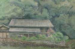 〈岩手県気仙郡三陸町綾里白浜の納屋〉 全国どこでも見かける納屋は農家・漁家の生活に欠かせない。納屋からその地方の生活をみるのは楽しい。 山裾のこの家は海音が届く距離にある。ここではでは牛を飼い農具や漁具が整理されている。 |