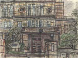 この学校は3年間の高校生活を過し、初めて油絵や美術について学んだ所である。 以来はじめて訪れてスケッチをしたが、この校舎は近いうちに取り壊されることになっている。その為に時々写真におさめたり、スケッチに来ている人の姿が目についた。私はスケッチをしているうちに先生や学友の顔が思い出されて、当時の様子が何かタイムスリップしたかのように感じられた。