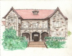 雑誌を見ていて、目にとまったのが「古河庭園」でした。漫画の「はいからさんが通る」を思い出すような洋館だなと思い、スケッチしてみようと思いました。 建物を訪れて見て、まわりを本郷通りに囲まれ、騒音が響くなかで、一歩敷地に入ると、静かで袴姿の女学生が現われてくるように感じました。また初めてのスケッチという事ではずかしさと、自分にスケッチ出来るのだろうかという、とまどいもありましたが、いざスケッチしてみると、「楽しければいいのかも」と思い、これで終わりではなく旅行に行った時など、スケッチしてみようと思いました。 |