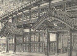 重たいスケッチになってしまった。1日で終えるつもりが4日、延べ15時間程もかかってしまった。これを建てた人々の思いが描き進むにつれ感じられ、ついつい深入りしてしまった。 |