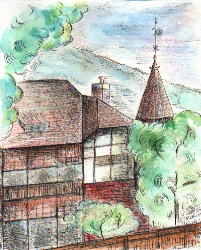 昨年暮れから何度も足を運んでいる大好きな神戸。 横浜によく似た街だが、神戸はどの風景にも美しい六甲がバックにある。 あまりにも有名な北野異人館。一見ペンション風の風見鶏の館は中に入ってみるととても重厚な雰囲気がする。 外囲で地元の画家達がその場で描いた水彩画を3000円程で売っていた。そこに混ざって一日一緒に描かせて頂いた。 普段野外で制作することはないので、大勢の観光客に観られる緊張で、自由に腕が動かなかった。