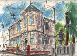 この建物は古代吉備王国の中心、総社という町の今は寂れた商店街のはずれにある。周辺には古い民家が軒を連ねておりレトロなムードが漂う。 これは明治四十三年に建築された旧総社警察署で、現存する市内唯一の明治洋風建築である。 八角形の楼閣風の入口は、当時の雰囲気を漂わせている。また、外壁の白いペンキ塗りの下見板と入口横に置かれた赤いポストがよく馴染んで遠い懐かしい思いがした。現在はまちかど郷土館として保存されている。