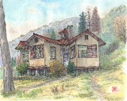 今年3月、近江八幡市にヴォーリスの建築を、地図を片手に1泊2日の忙しいが楽しいスケッチの旅をした。 2月末から、妻と共に大阪に来て3週間、愚息(大阪在勤)の結婚式、その他諸々の行事が無事に済んで、さて、自分で自分に与えた2日間の自分の時間である。 この時とばかり、張切って市内を駆け巡ってのスケッチ。 簡素ながら懐かしい風格のある家々で、特に木造の旧八幡郵便局と旧近江療養院の旧五葉館が、年老いた風雪を物語り、描きながらあれこれと空想が広がる。 近江八幡から数日後、ヴォーリスの関西学院と神戸女学院を再訪。5年前の阪神大震災の前後に神戸周辺を巡って、痛々しかった街と復興への力強い動きに感動したことを思い出し、5年間の変化、現代の状況の良否など考えさせられる。 両学園共、昭和初期のプランが今も脈々として生きていて、新しい建物郡が当初の建物と殆ど同じ印象で、全体プランの中に見事に納まっており、単なる建築技術をこえた、将来の時間を充分に見据えた、ヴォーリスの確かな構想力を強く感じた再訪であった。