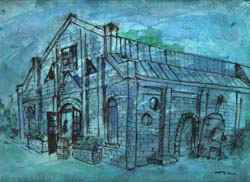 本当は赤いレンガの建物だけど、私は青い色が大好きなので青いレンガにしちゃいました。