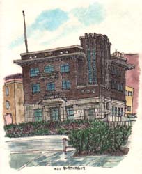 初めてスケッチしたのがこの建物。図書館で「日本近代建築紀行」を見て、私もこんな風に絵が描けたらと思いスケッチしました。全然上手ではない絵を持って建物の中に入り、お茶をいただき「せっかくだから記念にコピーさせてね」とコピーまでしてもらい、内部の見学もさせてもらって、最後に記念のハンコも押してもらって最高の一日でした。今回は2回目のスケッチです。 |