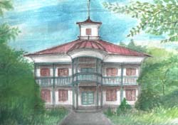 私の生まれ育った山梨県の東部山村は明治時代に鉄道がひかれると甲斐絹と呼ばれる機織産業で賑わった歴史を持つ僻地です。この旧尾県学校(おがた郷土資料館)は明治村に移築されている東山梨郡役所と同じ『藤村式建築』です。 |