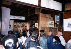演壇の傍に立てられたスクリーンには川越の建築のスライドがエンドレスで映写されるなか、座敷には約40人の市民が着席。