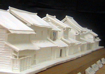 青梅宿の町屋/藤沢 穣 所在地/東京都青梅市 青梅は織物で栄えた町。少なくなったとはいえ、未だに当時を偲ばせる町屋が随分と残っている。青梅の街を通る度に、その中のいくつかを作って「町並」を再現したいと思っていた。建物の維持は大変だとも思うが、諸家のご努力とご苦労に敬意を表したい。一見近代的に見える建物にも、その裏に町屋造りの構造を見ることができる。 |