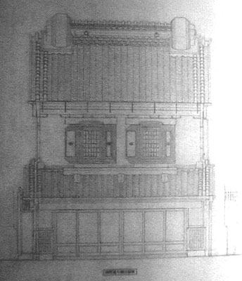 宮岡家住宅(まちかん刃物店)実測図/日影良孝建築アトリエ 所在地/埼玉県川越市 宮岡家住宅(まちかん刃物店)実測について 川越南町通りの西側に建つ店蔵、まちかん刃物店は明治26年の大火によって消失した店を明治30年に再建したものである。 日影良孝建築アトリエが宮岡家を実測調査することになったきっかけは、宮岡様の建物に対する深い愛情と川越に残る蔵の町並みを継承させたいという情熱によるものであった。 調査の目的は、建物が将来破損した時に完璧に復元できる精度をもつ実測調査であった。 調査は平成10年3月に行い、現場作業は一ヶ月半を要し、図面の清書まで含めると3カ月間かけて行った。屋根が急勾配であったこと、外部の左官仕事を完璧に実測したいことから、宮岡様にお願いし足場を架けていただいた。 もうあれから4年も経ってしまった。野帖や図面を再び、読み返してみるとまるで昨日のように作業中の風景が浮かんでくる。(日影良孝建築アトリエ・日影良孝)
