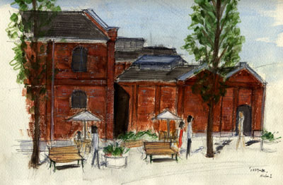 ノリタケの森(旧日本陶器工場)/池田亜紀子 所在地/愛知県名古屋市 竣工/1904年 設計者/不詳 名古屋市内には、煉瓦造の近代建築はあまり残っていない。以前、スケッチ展名古屋会場として借りた市政資料館やこの旧日本陶器工場と、産業技術記念館になった豊田紡織工場が有名で、あとはあまり見ない。今は「ノリタケの森」として工場全体を再生したのだが、古い工場棟はこの建物以外は壊されてしまった。明治、大正、昭和に渡り工場を増やしていったので、現存すれば煉瓦造工場の時代別の変遷がわかっておもしろかったのに残念だ。以前の風景を知っているだけになんだか悔しい気がするのは私だけだろうか? |