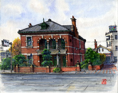 下関考古館/田島利行 所在地/山口県下関市 竣工/1813年 設計者/不詳 東京の画友が故郷の山口市で展覧会をするというので淋しいだろうと一日応援に行った際、現地で受付をしていた山口に住むMさんと唐戸ヘ出た。