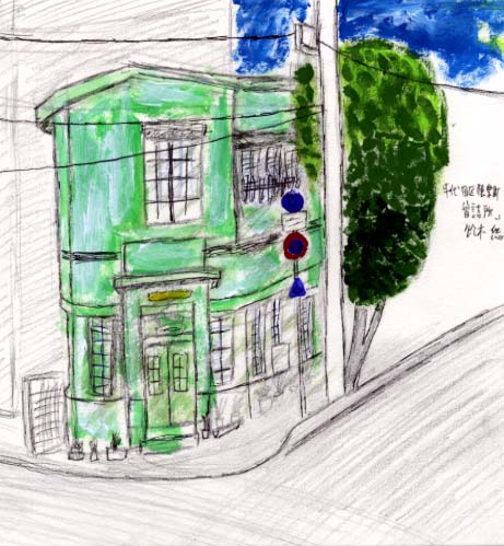 散歩中に見つけたこの建物。最初は交番だと思いましたが、近くによると「千代田区猿楽町會詰所」と看板をたてていました。中は無人で物置のように扱われている會詰所。 會詰所とは何だろう? と思いながら描きました。後で分かったことですが「猿楽町會詰所」とは、猿楽町の會詰所ではなく、猿楽町会の詰所(待機所)のことでした。 昔はやはり交番だったようです。千代田区景観まちづくり重要物件。