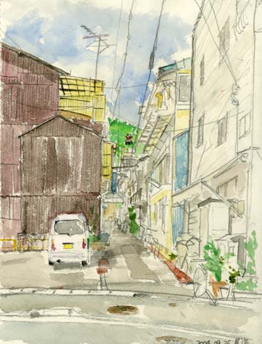 港町の風景は生活感が路地に溢れ出ていて、その飾り気のない素直な佇まいが心地いい。 海峡を渡る渡船の気配を感じながら開放的な気分でスケッチを楽しみました。