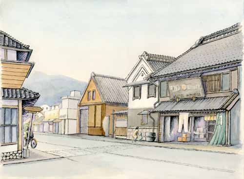 スケッチに入ったが、暫くすると付近の家の人が、お茶を差入してくれる。スケッチの手を休めてこの街の話を聞いた。