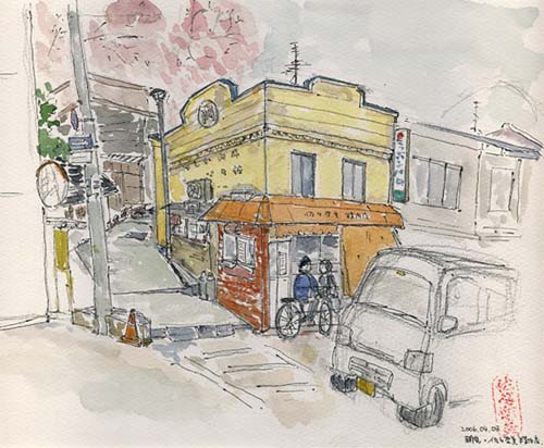 まちの高校生が自転車でたまってコロッケをほおばっている。小学生が手に100円玉を握りしめて入っていく。ここは賑やかな「新見のファストフード店」。この看板建築は現役、コロッケの良い匂いを漂わせている。