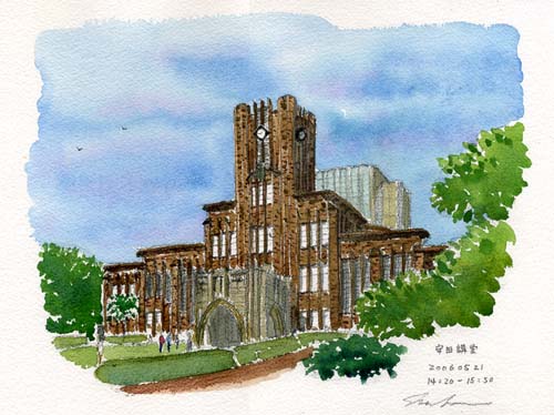 近所にありながら特に意識しなかった安田講堂。描いているうちに愛着が湧いた。やはりスケッチをするということは、よく見るということで、普段見過ごしている良いところに気付くのだと思った。