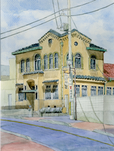 埼玉県鳩ケ谷市でみつけた建物。 2年前に埼玉高速鉄道の鳩ケ谷駅を降りて散歩をしていたら坂の上に突然現れた洋館、こんな場所でと歴史を調べたら江戸時代は日光御成道に面しています。風情のある建物です。昭和6年に竣工したといわれる建築物で元は船津眼科医院でした。鳩ケ谷市歴史資料館の資料で昭和11年の商店街マップに記録されていました。設計者は不明。ゼツエシオンの影響があるとか?