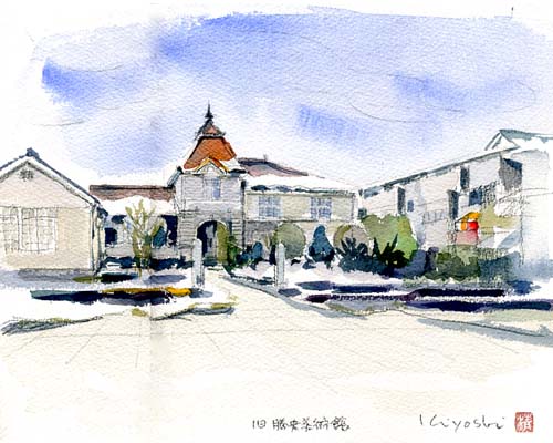 何度か訪れたことのある岡山県の東北部にある勝央町。いつの間にか現役引退した美術館ですが塔のある姿が印象的でした。珍しく雪の降った日に偶然スケッチすることができたのはラッキーでした。