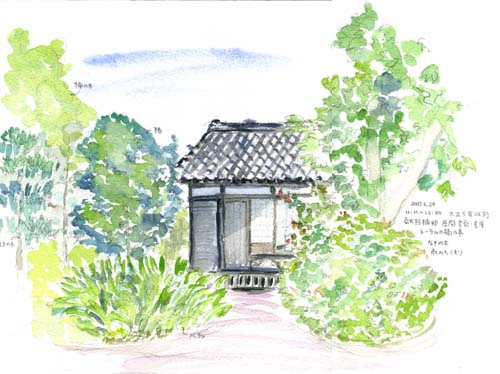 南方熊楠が大正5年から住んでいたという旧邸。敷地内にはいろんな植物が植えられていて、熊楠によって親属新種の粘菌が発見された柿の木も見ることができる。訪れた日は雨が降ったりやんだりのお天気で、雨に濡れた植物がいっそう青く感じられた。書斎は母屋から独立した平屋8帖程度の和室で、椅子と机の他に文机(ちゃぶ台かな?)が置かれていた。文机に合わせてずいぶん低い位置まで下げられた吊り照明が印象的だった。