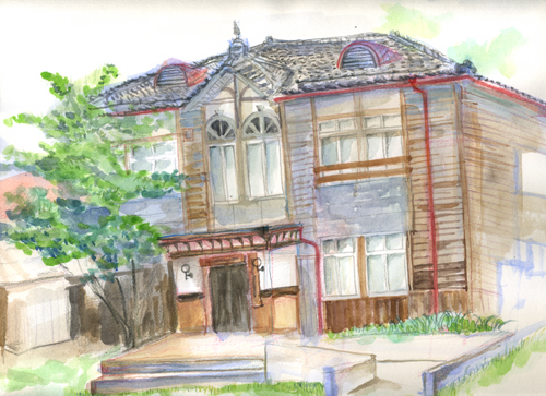 夫(50歳)はこの建物が保育園として使われていた頃、ここに通ったそうだ。隣接して小学校があったそうだから、さぞ賑やかだっただろう。つい最近まで老人集会施設として現役だったが、今は老朽化のため閉鎖されている。東川手村の歴史をまとめた本に「建前」の写真があった。地元の大工さんが建てた村役場。建物に対する思い入れが感じられる。今は自動ドアにサッシ。手を入れられながら地域の人々の集まる場所として頑張ってきた建物なのだ。