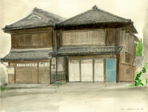 明治40年に山本周五郎(4歳)が住んでいた大月駅前の長屋。 この年の水害で周五郎の生家(大月市初狩町)が流され、祖父母・叔父・叔母を亡くすが周五郎一家はこの長屋にいたため無事だった。 大月駅前道路の拡幅工事のため取り壊されることになってしまいました。 複雑な想いですが、せめて描き残しておこうと思います。