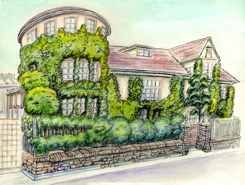 私が小さい頃、よく母に連れられて、また一人でも、いろいろとお医者さんに通っていました。その中で、洋館風の建物がいくつかあったのを覚えています。オシャレなガラス窓に、ソファーとテーブルが置いてあり、うす暗いけれど、何だか落ち付きました。その頃の記憶が私に古い洋館へ親しみを感じさせてくれます。当時あこがれた「オシャレな建物」に対して感じたものを、残して行きたいと思います。