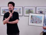 「歴史的建造物を愛情を込めて描くことで、保存のメッセージを伝えよう」と、1993年から始まった近代建築史への旅スケッチ展。18回目となる今年は、東京―倉敷を結んでの開催となります。東京・神楽坂では、展示準備中からオープンを待ちきれない来場者が覗きに来てくれました。歴史的建造物への意識の高さを反映しています。全作品がインターネット上で閲覧できるウェブ展もオープンしました。 |