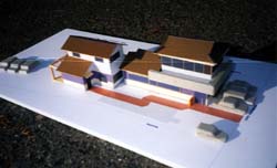 時代が求める歯科医院建築とはいかなるものであるか。「最新技術の導入」「清潔と明るさ」「人にやさしい診療所」といった属性に加えて、ここでは「町の記憶としての歯科医院」というものを重視したかった。例えば記憶。子ども時代の歯医者はいつまでも覚えているものだ。更に、まちなみにとっての重要性。地方都市では特に深刻になっている、軽薄で単一的な景観へのくさび的役割を持たせられないか。地域の人々にとってそれは「安心感と信頼感」につながるに違いない。そして患者の安心感は医師のゆとりにつながるだろう。そのためには軽薄や表面的な豪華さを持つ素材や、初めはキレイでもすぐに劣化する新建材の使用は避けたい……そんなイメージがふくらんでいった。