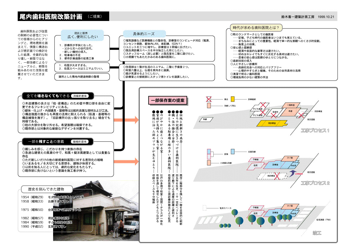 群馬県太田市で戦後直後から続いてきた尾内歯科医院は、診療スペースの狭小化と設備の一新の必要、更に都市計画道路の拡張工事などの理由により「なんとかしなければならない」という状況にあった。