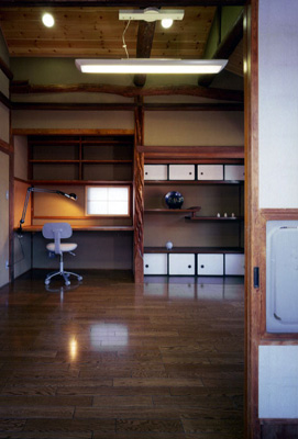 和室がある二階はほぼ原形のままとし、壁の塗り替えと天井の撤去によってのびやかな空間とした。