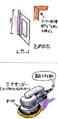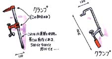 45度のひし形につくられた留め型定規は、「留め」と呼ばれるコーナー部の切断の型になる器具。スコヤやノギスも精密な作業には欠かせない。 小美濃さんは塗装も自分でやる。やはり木目を活かしたナチュラルな仕上げがメインなので、塗膜をつくらないドイツ製のオイルフィニッシュが多い。 接着時に材同士を締めつける道具にハタガネとクランプがある。市販のハタガネの他に、全ネジと木片で自作したものも。少し大きなクランプは軸の部分に水道管を利用するので、長さを自由につくることができるし安上がりだ。