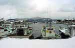 2001年初春「北陸・中国・近畿の旅」 ●北陸・小浜 小浜では、町並みとそこに生きる人がどんなものなのか知りたかった。 夜遅くに着き、宿に入れずに夜通し雪の中を歩き廻った。ようやく空が白んできたところで小浜城址に行った。建築物としての城は全くといっていいほど残っていなかったが、その城壁址から眺める町には人の生きている「におい」がした。まだ明け切っていない空を眺めながら城下へと降る途中で聖ルカ教会を見た。残念ながら中には入れなかったが、明治30年から変わらず川岸に建つその姿はまさに小浜の風景そのものになっていた。船だまりでは漁船が所狭しと停泊しており、城址から見えた風景がすぐ目の前にあった。改めて考えると、雪深いことに関係しているのか、小浜の町は建物同士の距離、人同士の距離、そして人と建物の距離が近く、凝縮した関係があるように思えた。 続いて歩いていくと、そこには雪に埋もれた小浜の古い町家が昔のままに残る町並みがあった。この地方には商売や一時の休憩に利用される、建物正面に付いている折り畳みベンチにも見える「がったり」が残っており、雪かきをする町の人たちに話しを聞くと、昔は「がったり」で一休みしながら家族が語らったものだという。町並みの中にあった一軒の古いお店に入ると、そこは翡翠や瑪瑙を加工して売る職人のお宅で、店の老婦人と今日の雪のことを話すうちに昔の雪は今よりも多く降っていたという話、向かいの駐車場は紙(和紙)のお店があったが代替わりしてすぐ、引き払って敦賀に出てしまったというような土地の話を沢山聞いた。一言のお礼と、ひとかけらの石を買って店を後にした。それから、芸鼓さんとも話をした。昔のように派手ではないが、優しい付き合いが続いているのだとか。この日の海は真っ白な雪と濃紺の海がとても印象的で、少しばかり時間が戻っていくような気がした。あの老婦人や芸鼓さん達の見てきた海もこうだったのかなぁと思った。そして、日常というものの儚いが故の大切さ、そんなことを垣間見たのでした。彼女達や町に住んでいる多くの人たちは自分達のそれぞれ価値観を大切にしながら、すぐ隣の家のことや自分の家のことを大切に気遣っているのも感じられた。 ところで、明通寺という国宝が小浜にはあるが、全くといってよいほど観光地化しておらず、1200年近くもそのままだというのだから、もしかしたらそういうところが若狭の魅力なのかもしれない。