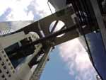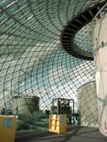 ●近畿・大阪 大阪ではとにかく建築物と利用する人たちの「力」に触れたかった。なぜその建築物がそこに建てられたのかということもあるが、それ以上に今、どのように建築物が使われているのかということが知りたかった。 芦屋に住む友人に一日道案内をしてもらって、いろいろ廻ることができた。瀧光夫氏の服部緑地都市緑化植物園を始め遠藤剛生氏の千里山ロイヤルマンション、梅田スカイビルやHEPFIVE、なにわの海の時空館、海遊館、サントリーミュージアム(天保山ハーバービレッジ)、ライカ本社ビル、コスモタワー、心斎橋そごう、キリンプラザ大阪などを見学した。特に、HEPFIVEでは商業施設である性格も手伝ってか、多くの人がウインドウショッピングを楽しみ、その雰囲気が吹き抜けの空間に存在感を与えているような気がした。また、なにわの海の時空館では大人も子どものように施設内を走り回る…ということはないが、非常に活き活きしており、その展示方法だけでなく、どこかに私達をそうさせる要素があるのだろうと考えさせられた。 大阪を見て思ったことは共通していて、その場に動的なエネルギーとしての「利用する人」の存在があるということだ。戎橋筋から心斎橋筋へのアーケードを見ると、通りが人が集め、賑やかで気持ちのよい混雑を作り出していた。そして、演出装置としての建築物が欠かせないことが分かった。 この旅を通じてて建築物には一時的に利用する人たちに重点をおくか、終日利用する人たちに重点をおくかという2つの種類があるのが明確に感じ取れた。