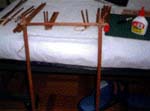 そもそものきっかけは”ワーロンシート”という素材を知ったことだった。 “ワーロンシート”とは和紙を塩ビでラミネートした耐久性に優れた素材で、ランプシェードやインテリアに使用される紙。切断ははさみやカッターで、接着はGボンド・プラスチック用接着材でOKという手軽さがうれしい。もちろん、70℃までの耐熱性も備えている。色は『紅梅』、『桜』、『紅藤』、『利休鼠』など、10数色あり、光をあてるとそれぞれ微妙に雰囲気が違っていて、どの色も美しく、選ぶのに迷ってしまう程である。そのほのかなあかりは”和”の空間を演出し、ひとの気持ちをなごませる要素を持っているようだ。 紙そのものに演出効果があるから、複雑な細工はいらない。ワクをつくり、ランプをすえつけ、ワーロンシートでくるめば、シンプルな”和あかり”ができる。不器用な私にもできるはずだと取りかかったのはいいが、作りはじめるとなかなかスムーズにはいかなかった。行き当たりばったりな性格上、細かい製作方法・寸法管理など考えもせず、途中で作業がストップすることもしばしばだった。