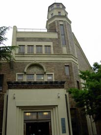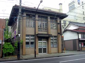 アーケードを抜けそのまま国道20号線を真っ直ぐ行くと、まず見えてくるのが昭和初期につくられた煉瓦造りの信州諏訪味噌工業協同組合事務所です。少し先には、構造体の鉄のアーチが特徴的な金物店。さらにその向かい側には、舞姫酒造があります。これは明治27年に建てられた建物で、通りに面して蔵の窓が店の特徴となっているようでした。また隣の蔵は文庫蔵だったのを改築して現在は、ギャラリーになっています。近代建築史への旅スケッチ展は、ここを会場とし開催されることになります。 舞姫酒造から上諏訪駅の方に戻って並木通りに行くと、その通りは道路両側に欅が生い茂り、温泉の沸き出し口もあるなど市民の憩いの場となる通りになっています。そこには入り口の大きな門と、ツルに覆われた建物の上諏訪病院や、木造の青木病院、コンクリート造りの新青木病院など病院が連続して並んでいます。更に進むと、通りに面してる蔵の黒い壁が倒れかかっていました。その先には、高島城へ行くことができます。 |