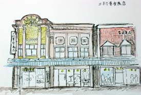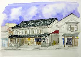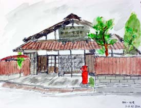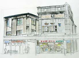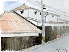 一見何でもない古いまち並をじっくり見て歩くことができ、また、描こうとすると「描きたいもの、良いもの」を見つけようとするので、それが楽しかったです。建築塾一回目のフィールドワークより、少し楽しんで描けるようになってきました。伊藤さんの、自分の生まれ育ったまちを愛する気持ちにも感動です。私も、自分にとって大切なものを見つけてゆきたく思います。【A.S】 |