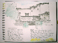 二年前、皆でサインした喜一先生の絵が軸装してあり大切にして下さっていました。嬉しいですね。午後は一人芦村へ。画板を手に村の地図を作ります。出会う村の人には笑顔で挨拶。「ニイハオ」