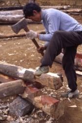 ▲ 木楞房と解体現場。 この家の木を再利用して新たな木楞房をつくる |