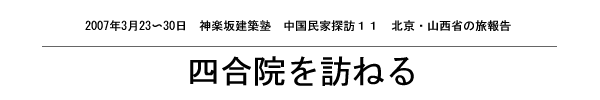 渋滞ツアー 2007年3月下旬、第11回目となる神楽坂建築塾中国ツアーが山西省の平遙と北京郊外の川底下村で実施された。メンバーは大橋富夫隊長ほか20